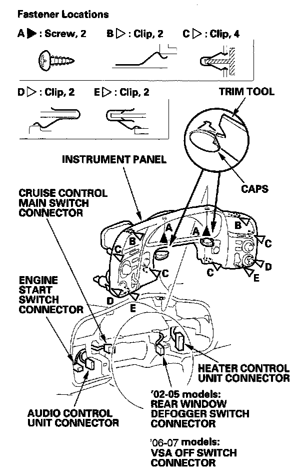 1. Remove the instrument panel as shown.