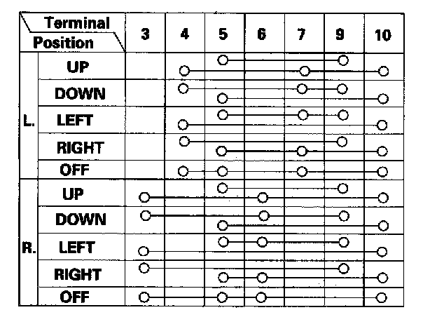 3. Check for continuity between the terminals in each switch position according to the table.