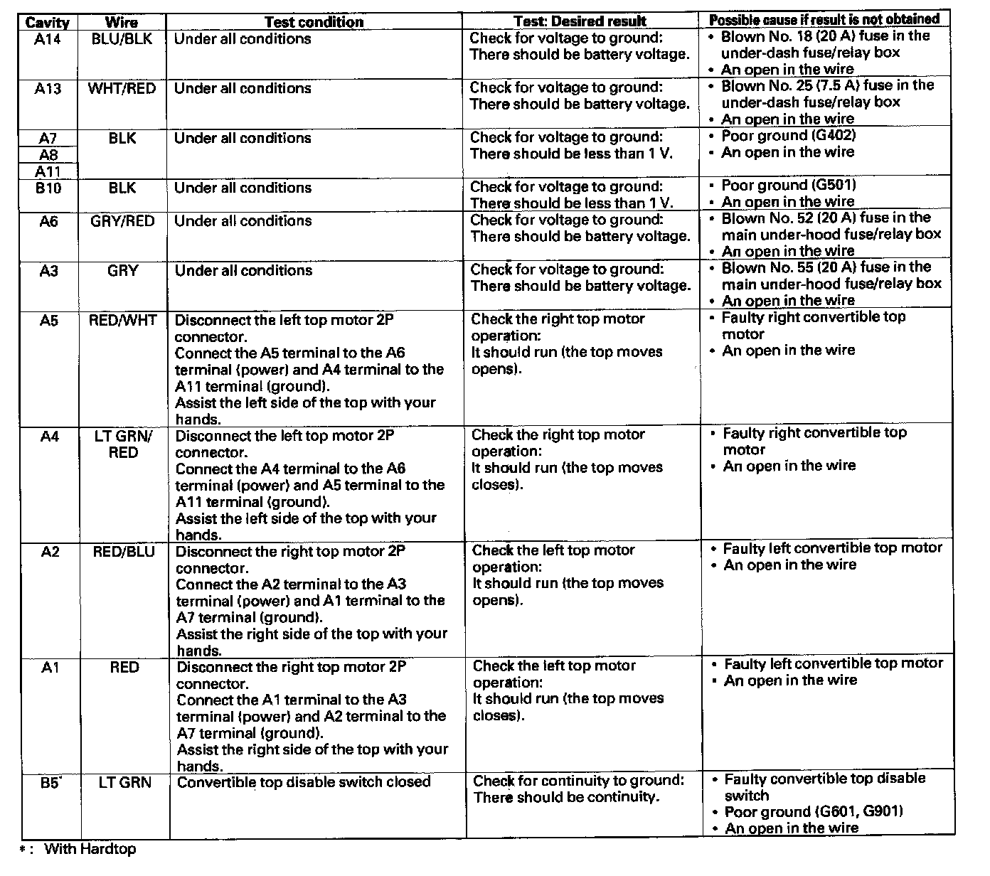 Convertible Top Control Module: Testing and Inspection