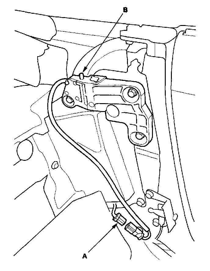 2. Disconnect the 2P connector (A) from the convertible top disable switch (B).