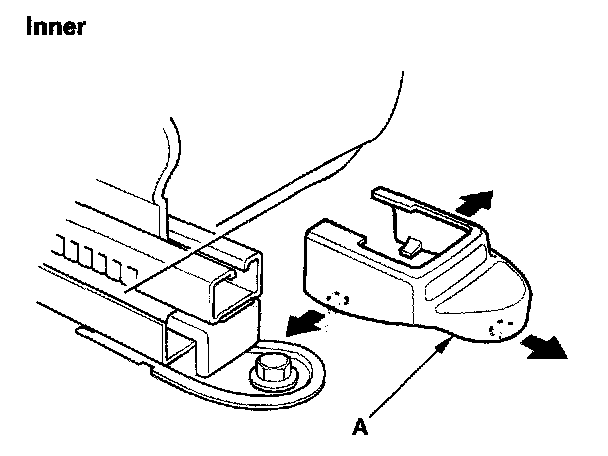4. Passenger's: Remove the seat track and covers (A) from the front of both seat tracks.