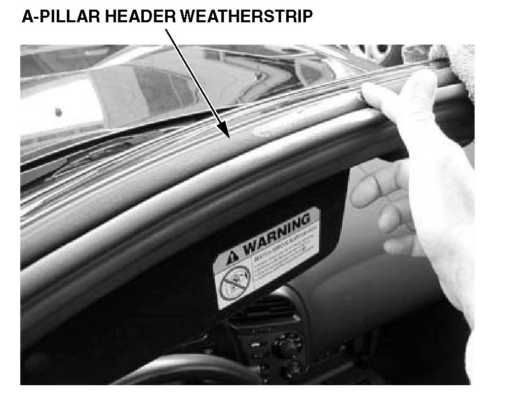 7. Apply a dab of Shin-Etsu silicone grease to the A-pillar header weatherstrip. Use your finger to rub the grease thoroughly into the weatherstrip material.