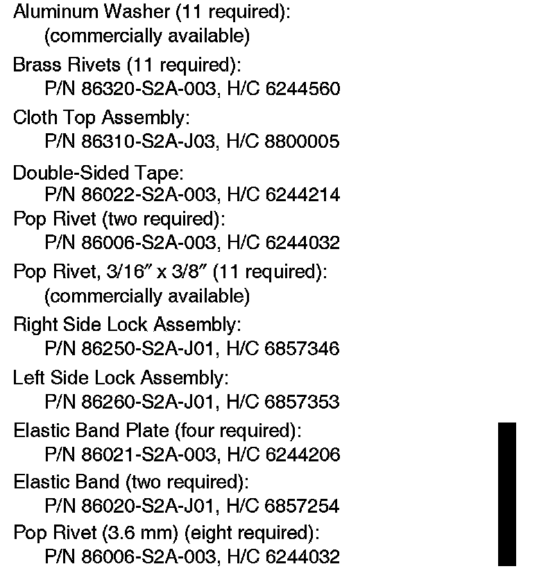^ Under PARTS INFORMATION, elastic bands and pop rivets were added.