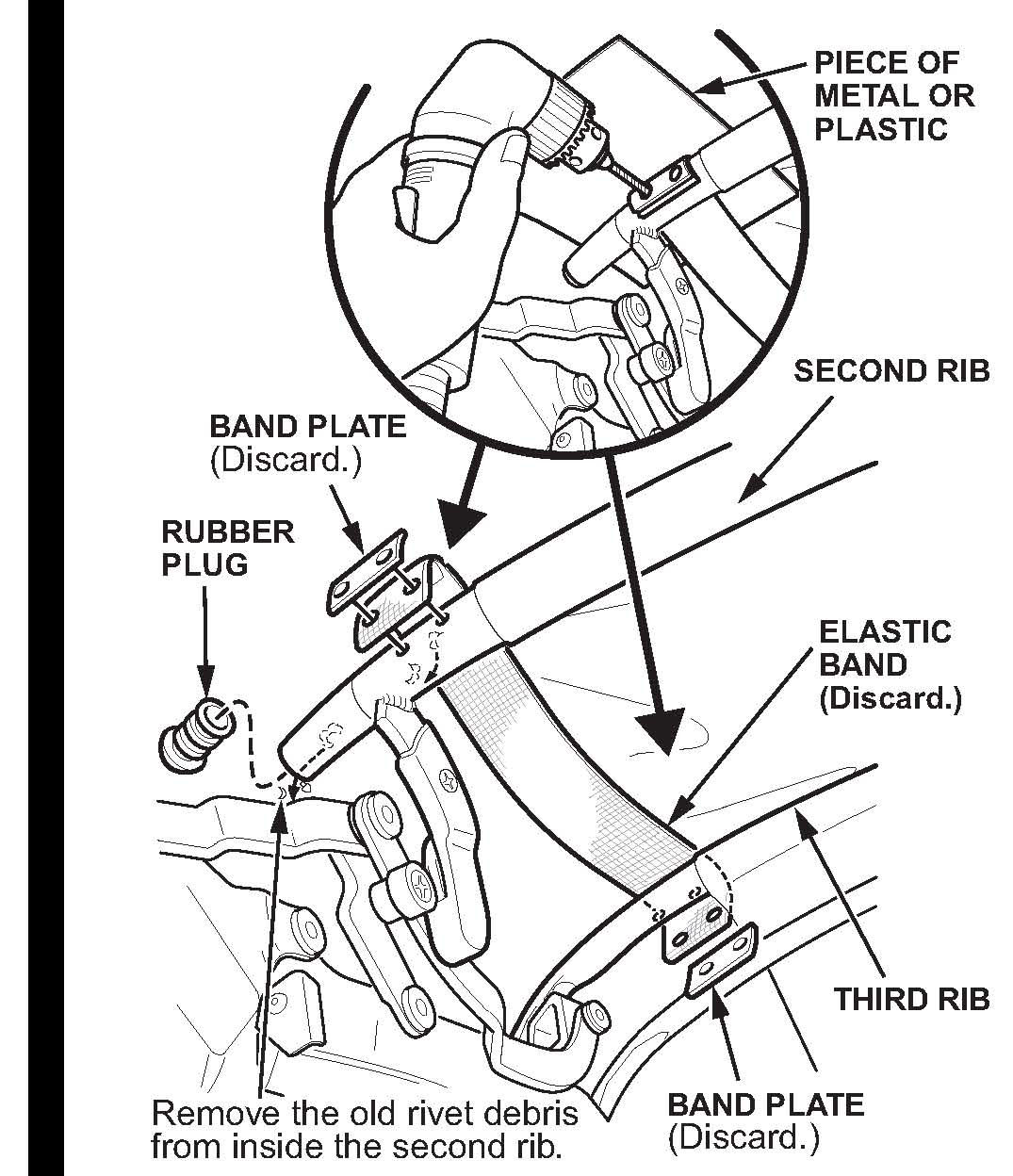 ^ If the second rib still does not pivot easily, replace the damaged parts.