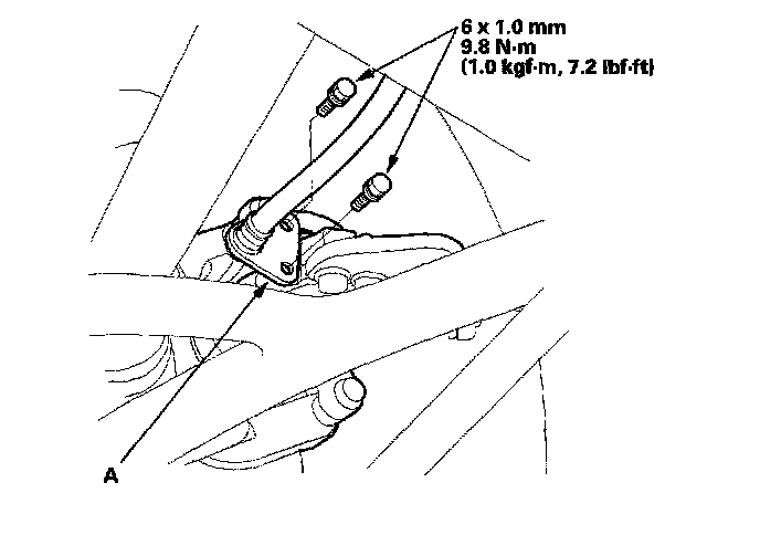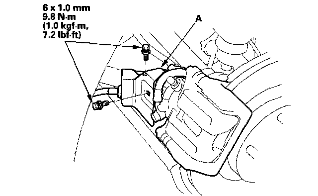 5. Remove the brake hose mounting bracket (A) from the rear caliper body.