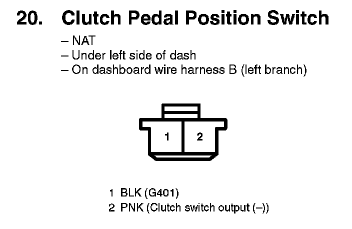 20. Clutch Pedal Position Switch:
