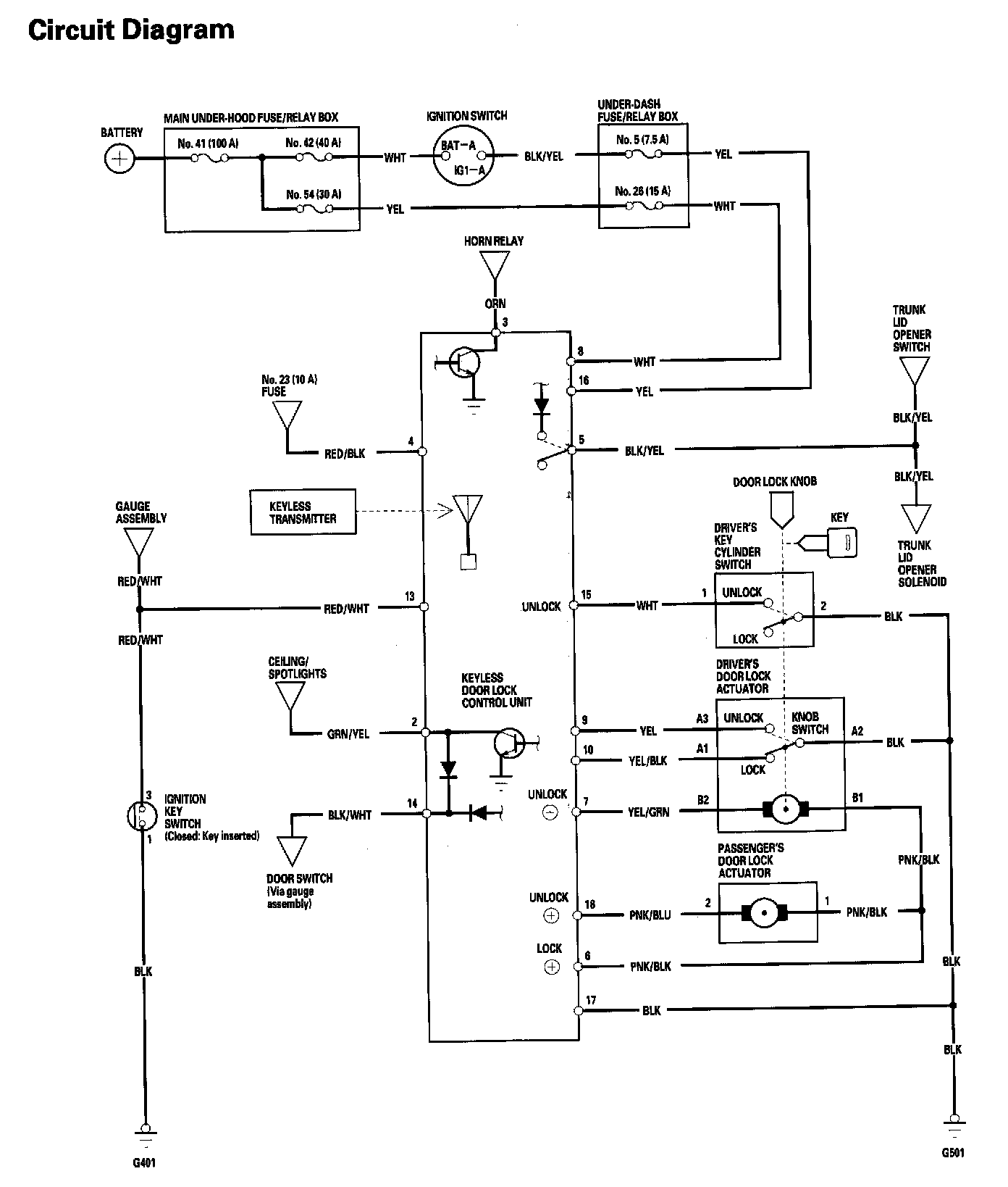 Keyless/Power Door Lock System - Circuit Diagram: