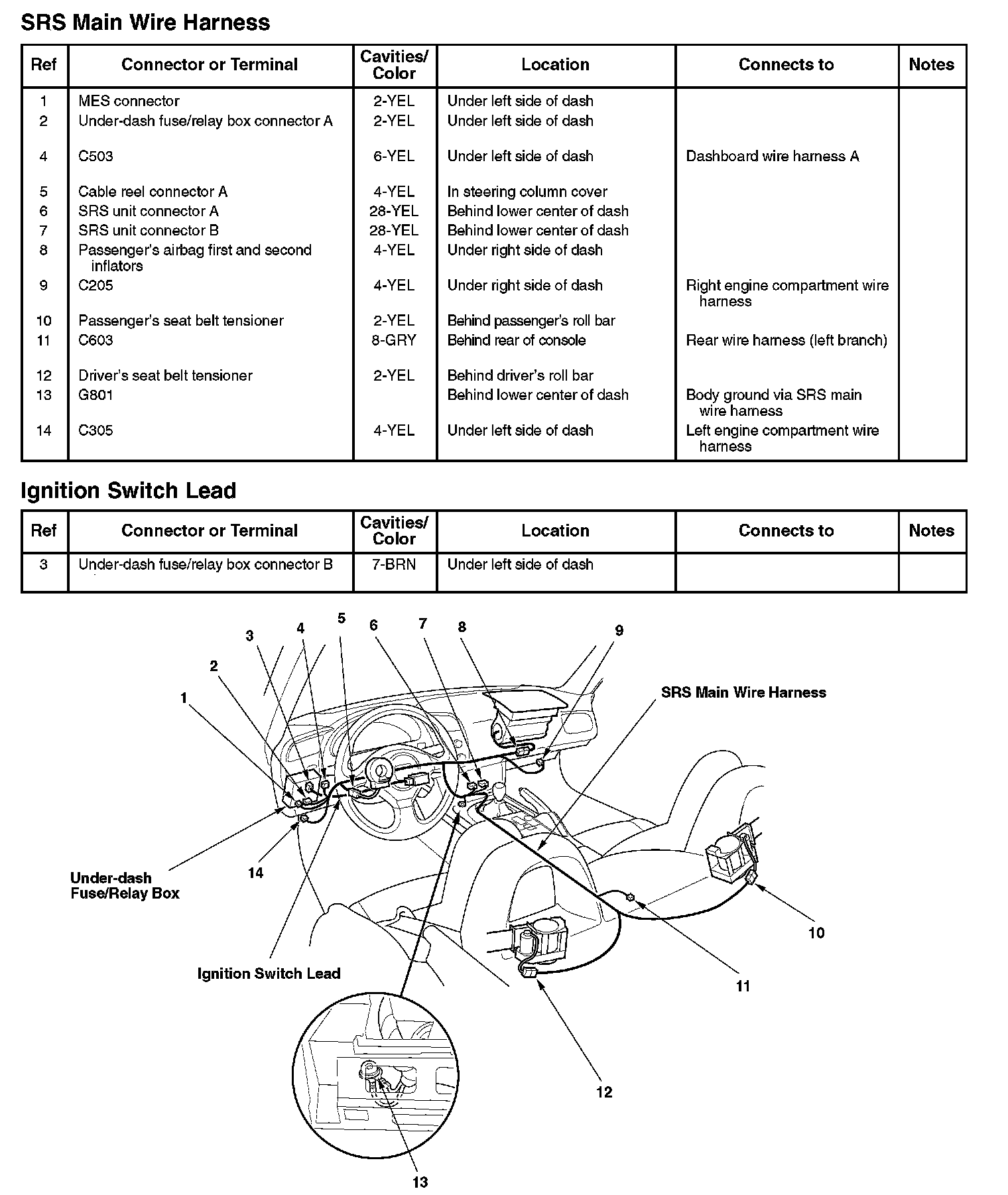 SRS Main Wire Harness/Ignition Switch Lead:
