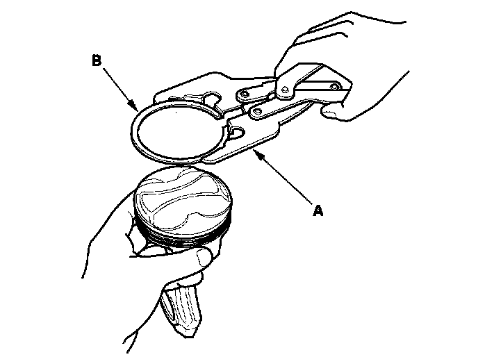 5. Measure the piston ring end-gap (B) with a feeler gauge: