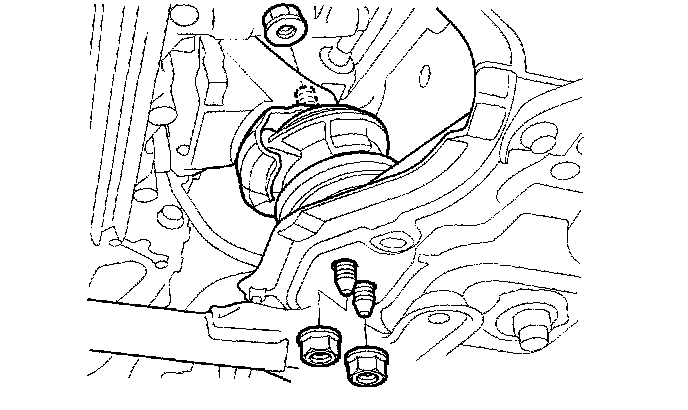5. Loosen the right side engine mount support nuts.