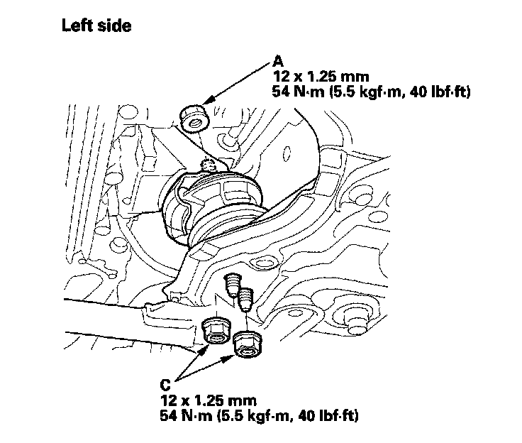 20. Tighten the left side lower support nuts (C) to the specified torque.