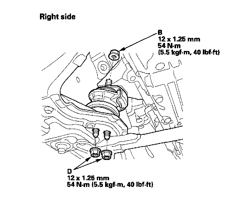 21. Tighten the right side lower support nuts (D) to the specified torque.