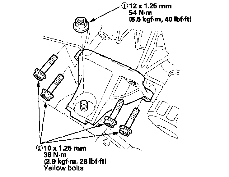 3. Install the right side engine mount bracket, then tighten the bolts and nut in the numbered sequence shown.
