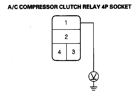 4. Measure the voltage between the No. 1 terminal of the A/C compressor clutch relay 4P socket and body ground.