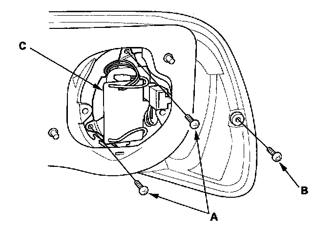 3. Remove the two screws (A) and the torx screw (B), then pull out the LED (C).