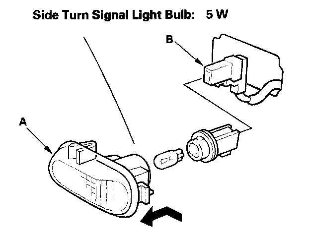 Push the side turn signal light (A) forward, then remove it from the fender.