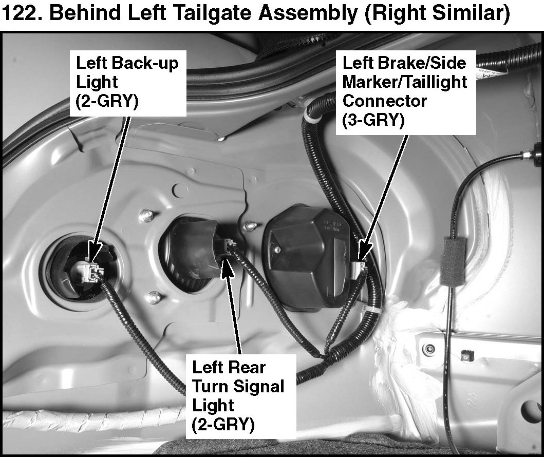 122. Behind Left Tailgate Assembly (Right Similar):