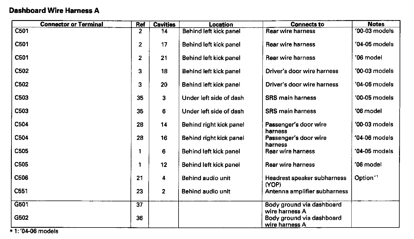 Dashboard Wire Harness A: