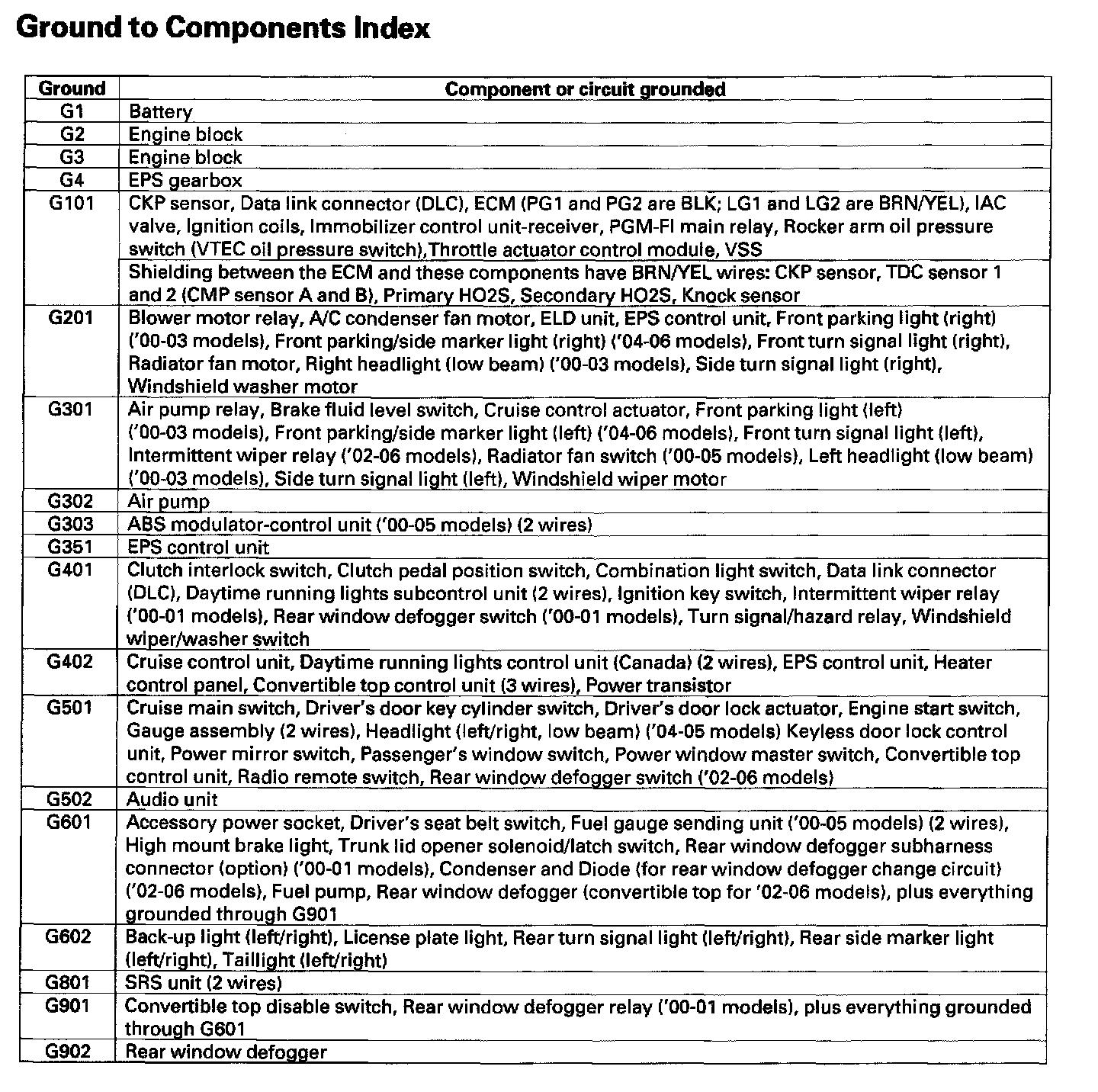 Ground To Components Index: