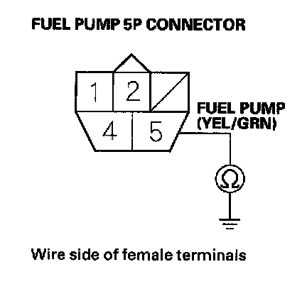 54. Check for continuity between fuel pump 5P connector terminal No. 5 and body ground.