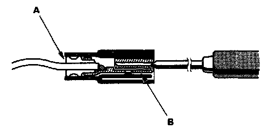 3. If you cannot get to the wire side of the connector or the wire side is sealed (A), disconnect the connector and probe the terminals (B) from the terminal side. Do not force the probe into the connector.