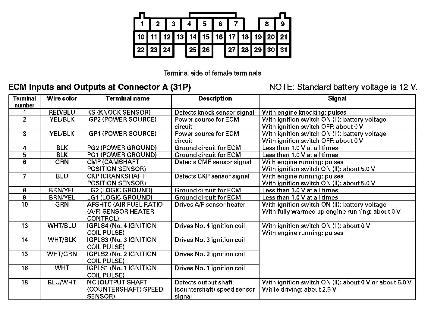 ECM Inputs And Outputs At Connector A (31P) Part 1: