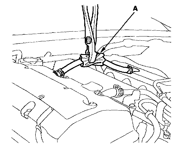2. At idle, make sure there is a clicking sound from the PCV valve when the hose between the PCV valve and intake manifold is lightly pinched (A) with your fingers or pliers.