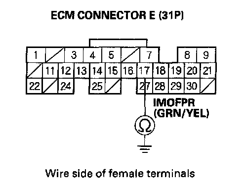 11. Check for continuity between body ground and ECM connector terminal E17.