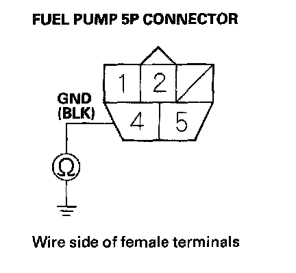 5. Measure voltage between PGM-FI main relay 2 (FUEL PUMP) 4P connector terminal No. 1 and body ground.