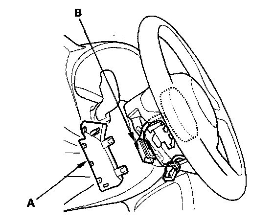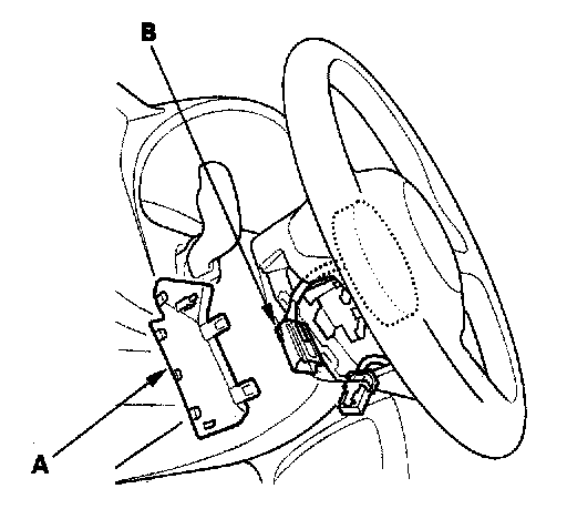 2. Remove the access panel (A) from the steering wheel, then disconnect the driver's airbag 4P connector (B) from the cable reel.