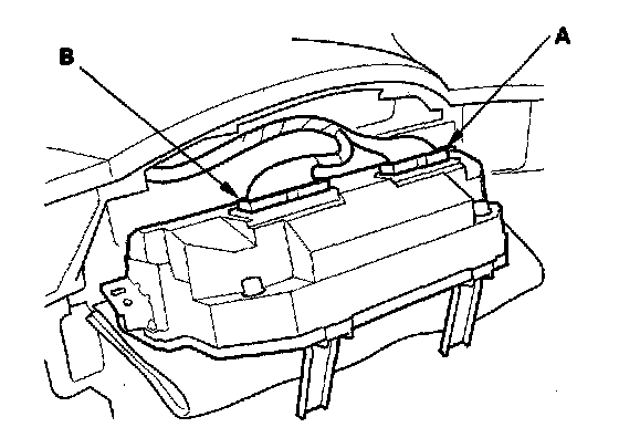 2. Turn the ignition switch OFF, then remove the gauge assembly. Disconnect gauge assembly connector A and B from the gauge assembly.
