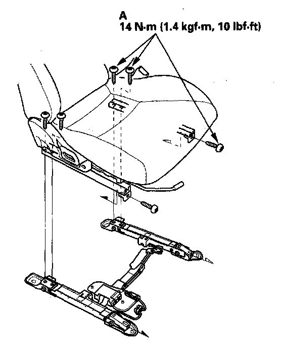1. Install the new passenger's weight sensors with Torx bolts (A) under the seat track.