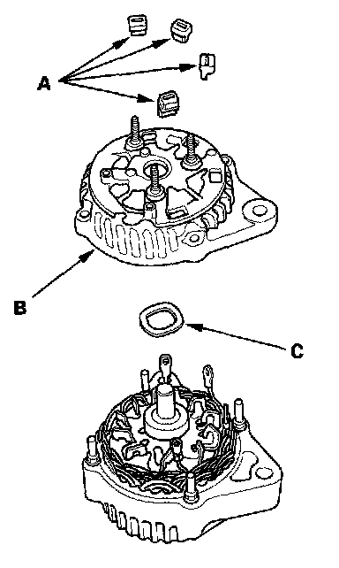 24. Reassemble the alternator in the reverse order of disassembly, and note these items:
