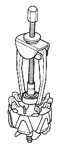 14. With a hammer and commercially available tools shown, install a new rear bearing on the rotor shaft.