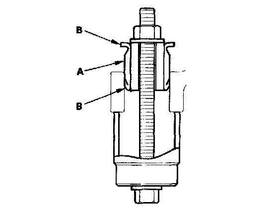 6. Install the gearbox mount cushion by tightening the nut until the mount cushion edges (B) properly fit on the gearbox flange surface.