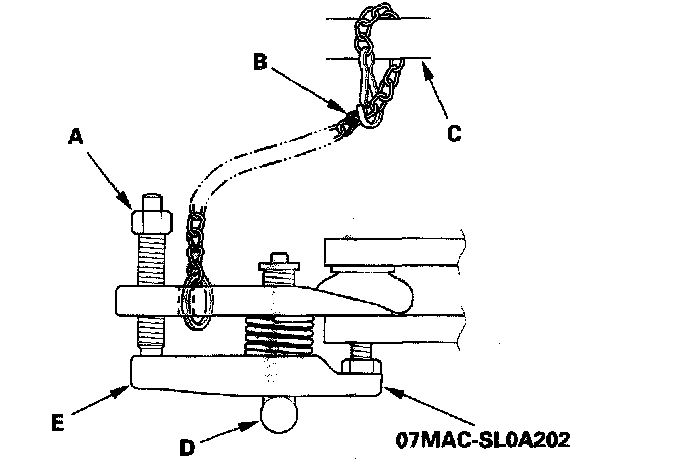NOTE: Fasten the safety chain (B) securely to a suspension arm or the subframe (C). Do not fasten it to a brake line or wire harness.