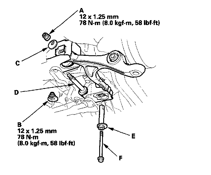 7. Install the lower arm in the reverse order of removal paying particular attention to the following items: