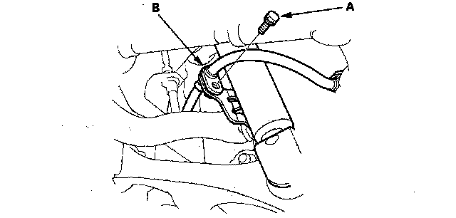 3. Remove the flange bolt (A) and brake hose mounting bracket (B) from the damper.
