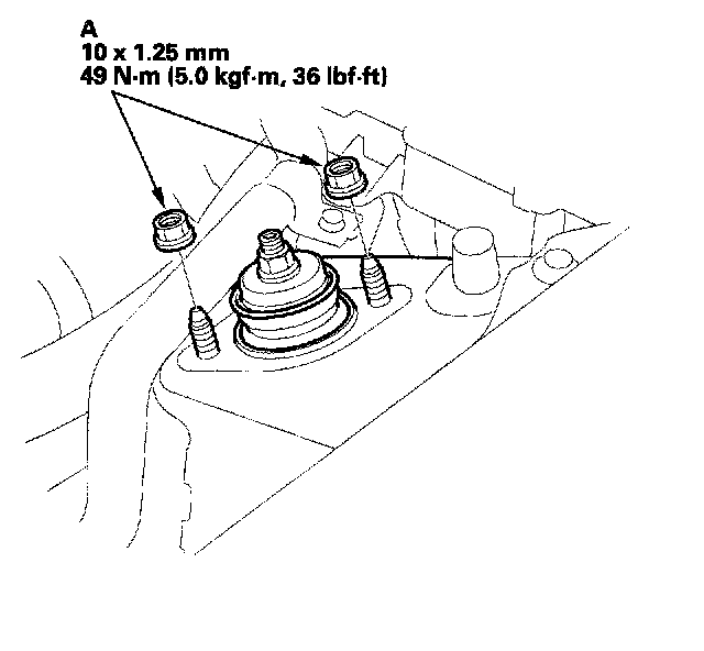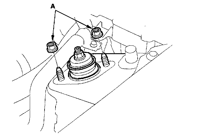 2. Loosely install the new flange nuts (A) onto the damper studs.