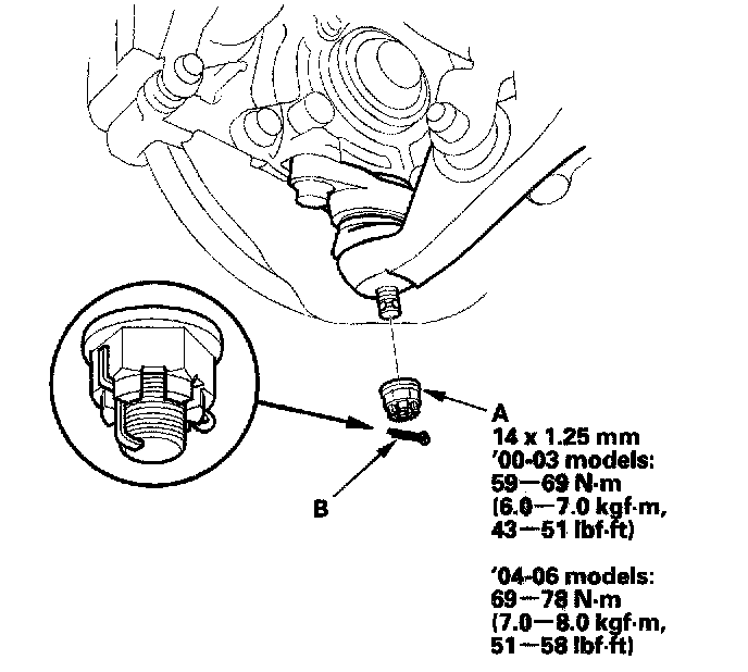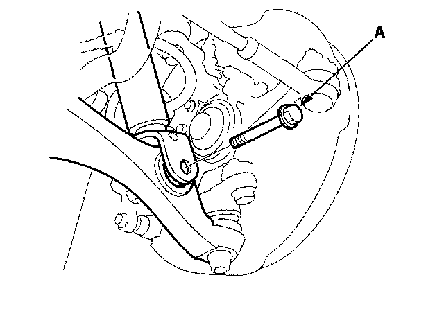 6. Install the castle nut (A) onto the lower ball joint pin, and tighten it to the specified torque value.