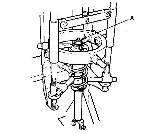 NOTE: When compressing the damper spring, use a commercially available strut spring compressor (Branick MST-580A or Model 7200, or equivalent). According to the manufacturer's instructions.
