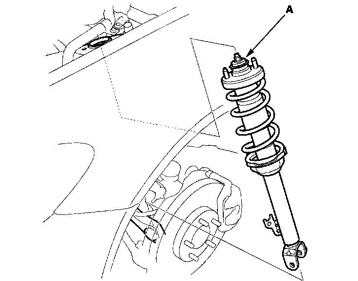 1. Compress the damper spring, then remove the self-locking nut (A). Do not compress the spring more than necessary to remove the nut.