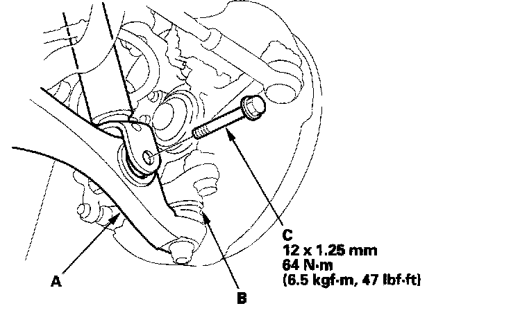 4. Install the new flange bolt (C), and lightly tighten.