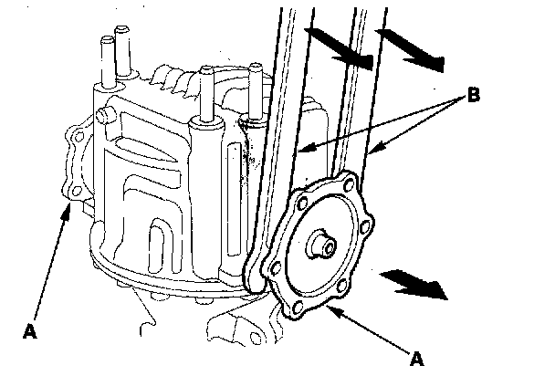 Differential Case Assembly Removal and Installation1. Remove the output shafts (A) from the differential case assembly using the pry bars (B).