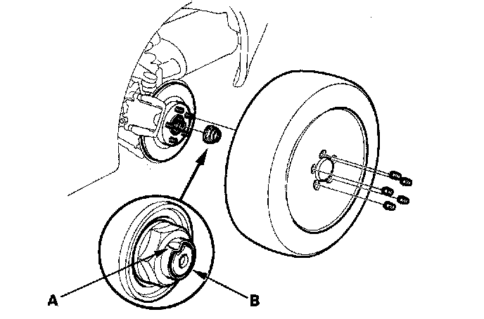 3. Lift up the locking tab (A) on the spindle nut (B), then remove the nut.