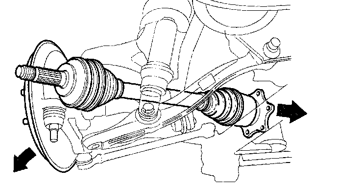 Driveshaft Installation1. Pull the knuckle outward, and install the outboard joint into the rear hub.