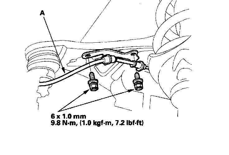 5. Install the wheel sensor harness (A) on the upper arm.