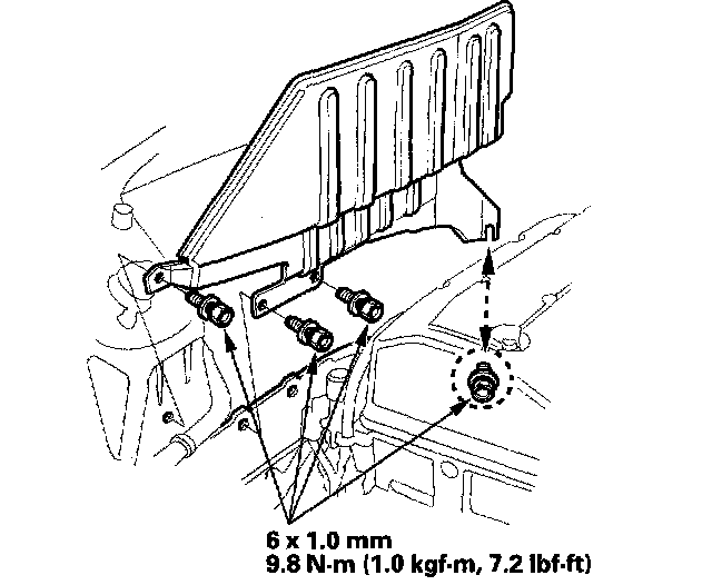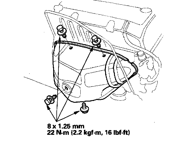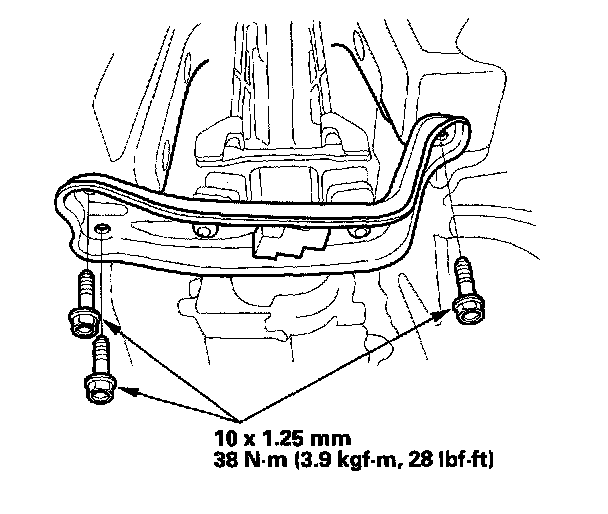8. Raise the transmission, then install the three transmission rear mount bolts.