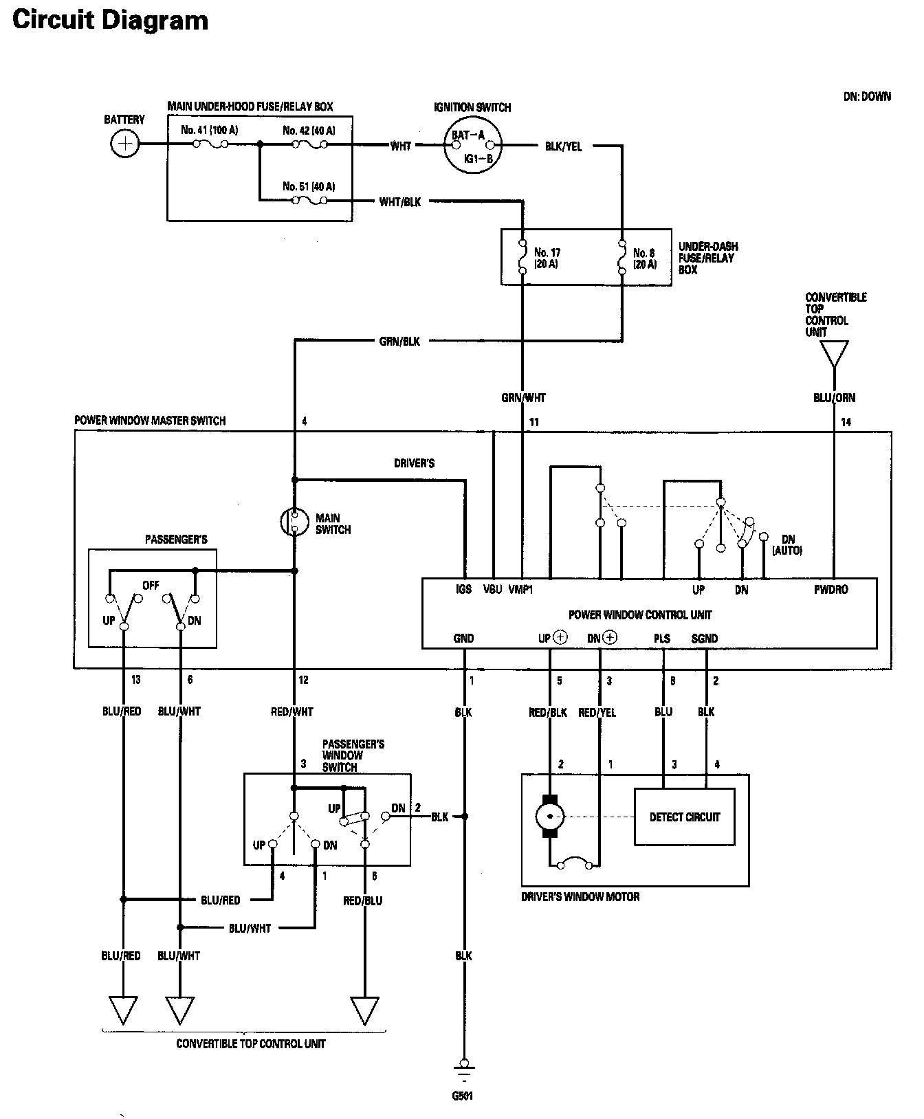 Power Windows - Circuit Diagram: