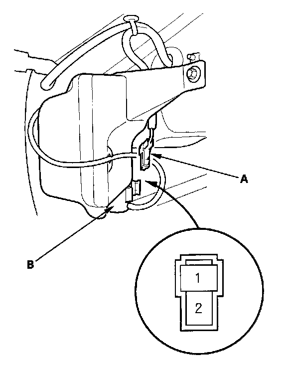 3. Test the washer motor by connecting battery power to terminal No. 1 and ground to terminal No. 2.
